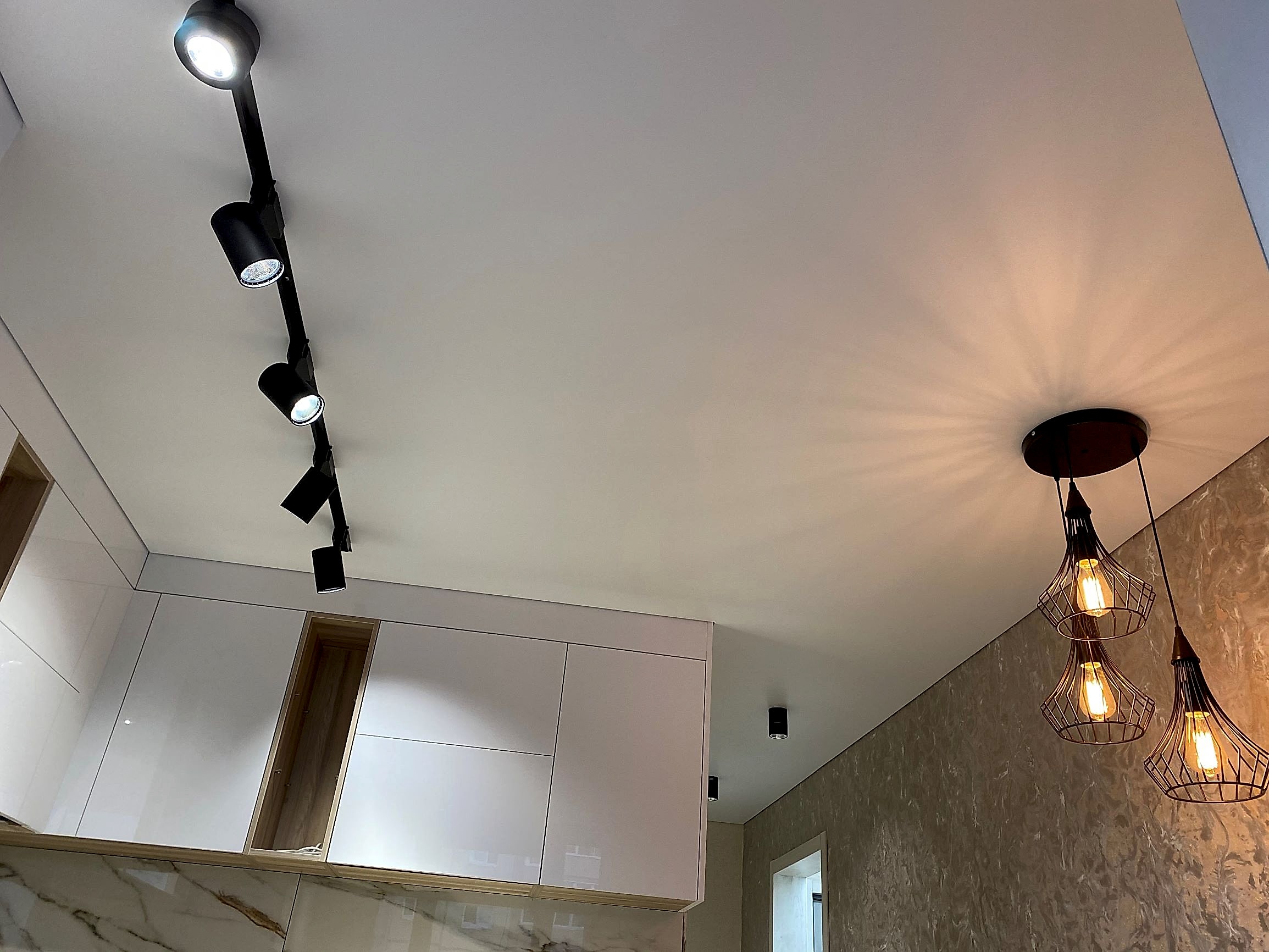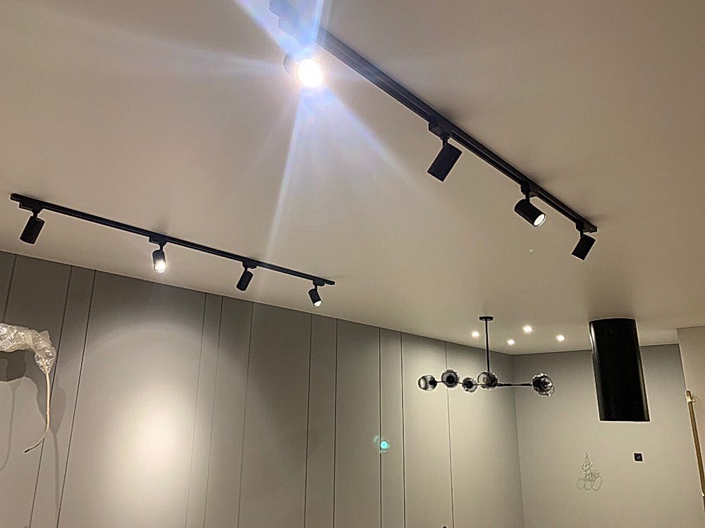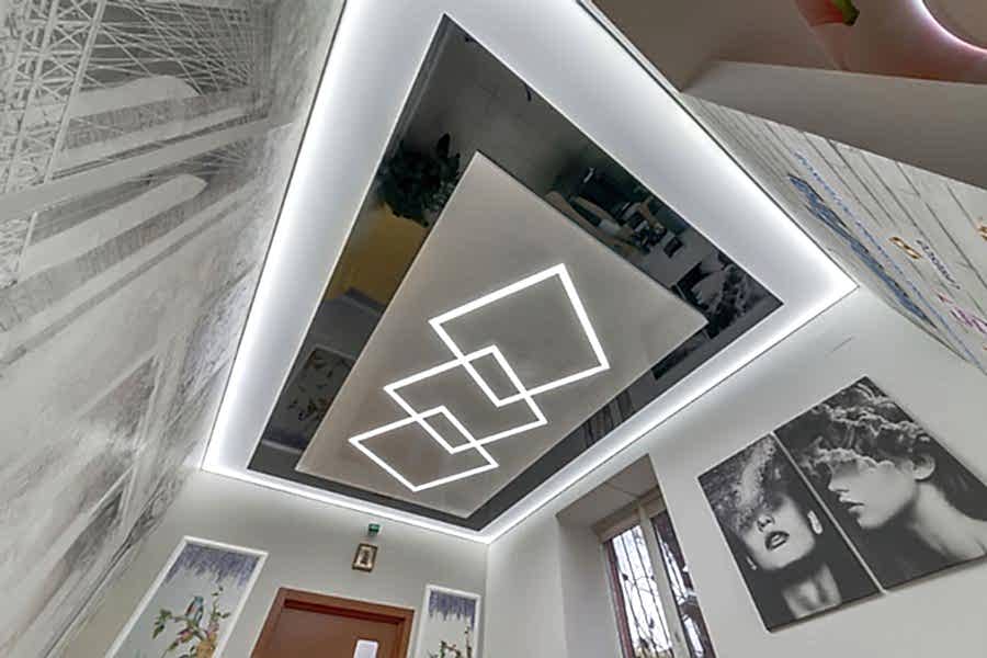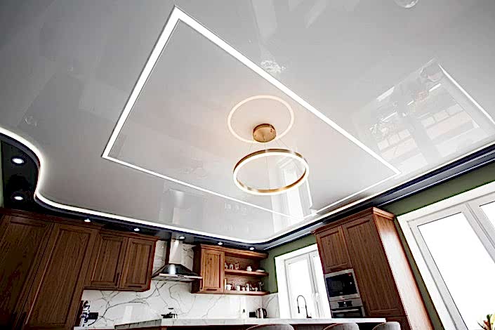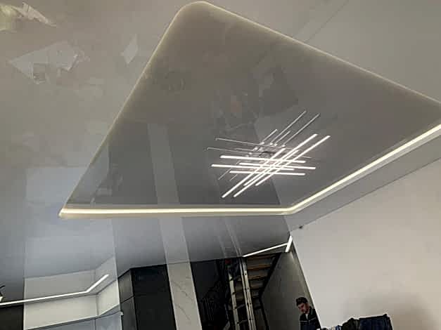 Есть противопожарные потолки Teqtum, которые часто используются в отделке общественных помещений. У них очень серьезные характеристики безопасности, соответствующие параметру КМ2, благодаря которому полотно устанавливается в торговых центрах, лобби отелей и т.д.