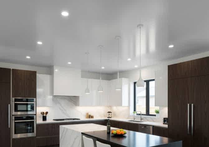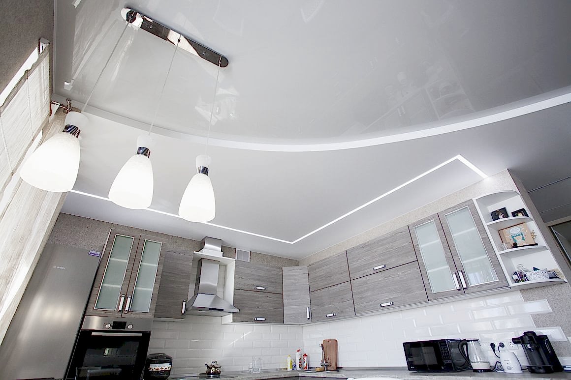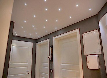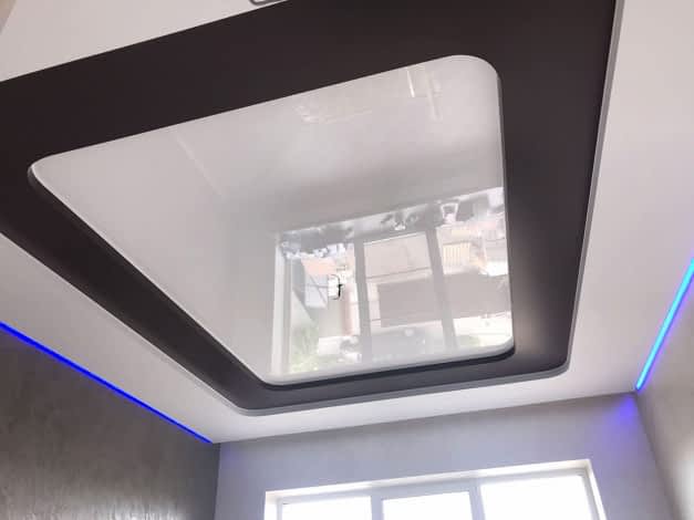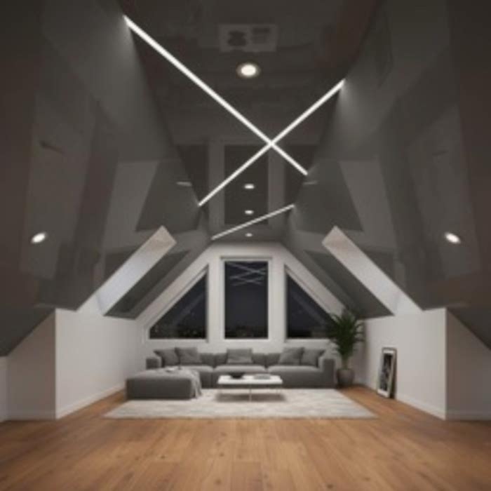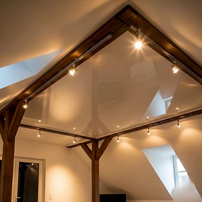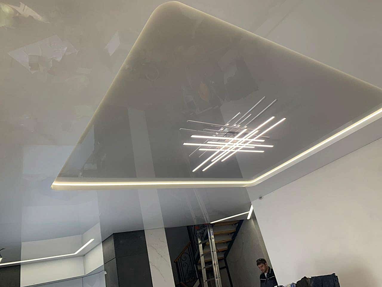 Есть противопожарные потолки Teqtum, которые часто используются в отделке общественных помещений. У них очень серьезные характеристики безопасности, соответствующие параметру КМ2, благодаря которому полотно устанавливается в торговых центрах, лобби отелей и т.д.